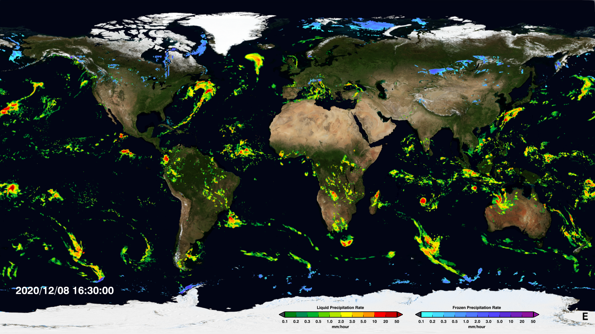 Global Precipitation Measurement (GPM) Integrated Multi-satellitE Retrievals for GPM (IMERG) This is a precipitation estimate using an algorithm combining information from the GPM satellite constellation.